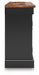 - Top with butcher block veneer pattern in deep brown wood tone finish